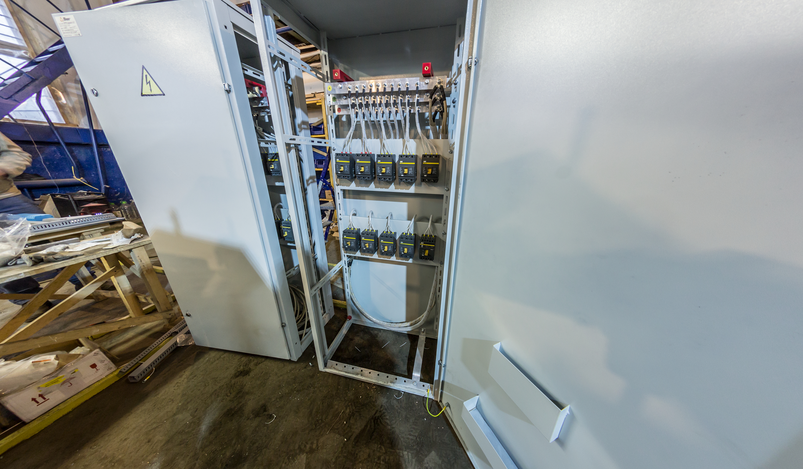 Участок металлообработки. На данном участке происходит сборка металлических корпусок Киосковых трансформаторных подстанций КТП, а так же каркасов Блочно-модульных подстанций БКТП, производством которых и занимается наше предприятие. Данный участок оснащен современным оборудованием: гильотиной и листогибом с ЧПУ, лентопилом, угловырубним станком и прочимм точными станками. Так же на данном участке находится покрасочная камера.